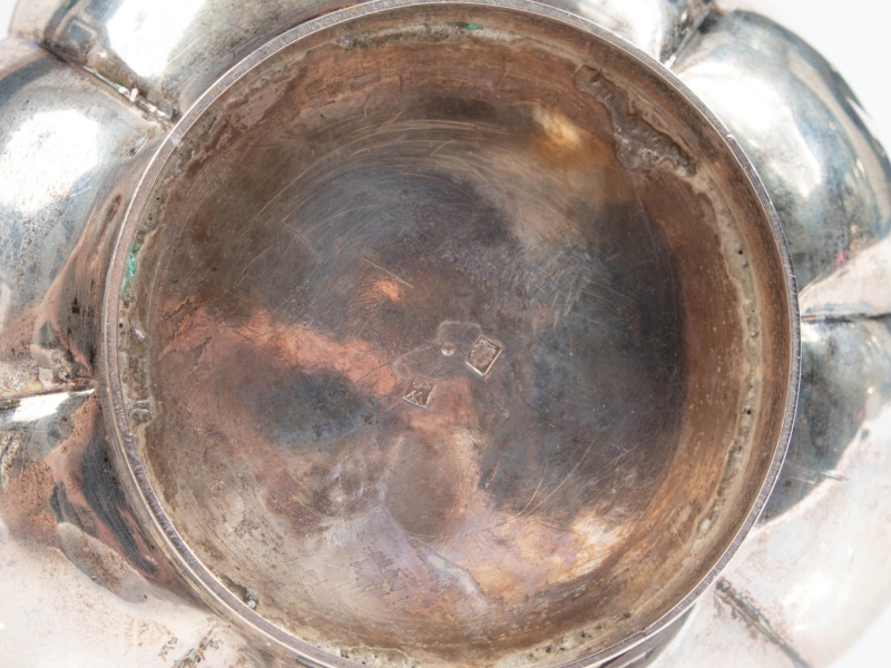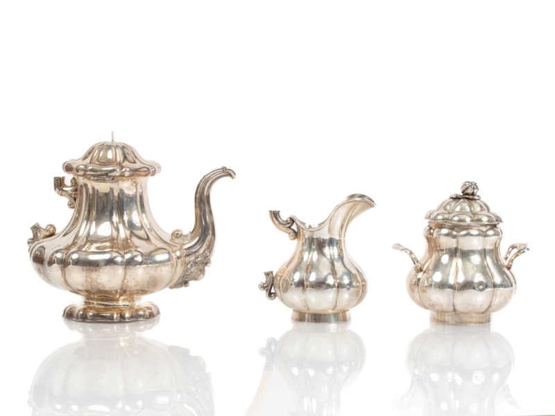 en argent à panse côtelée comprenant une théière, un pot à lait et un sucrier. Poinçons M.O et garantie (1832-1869)