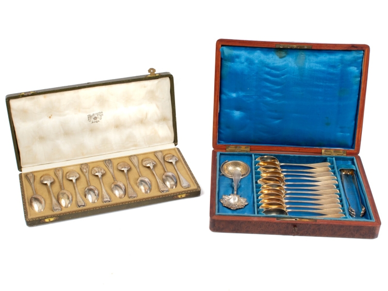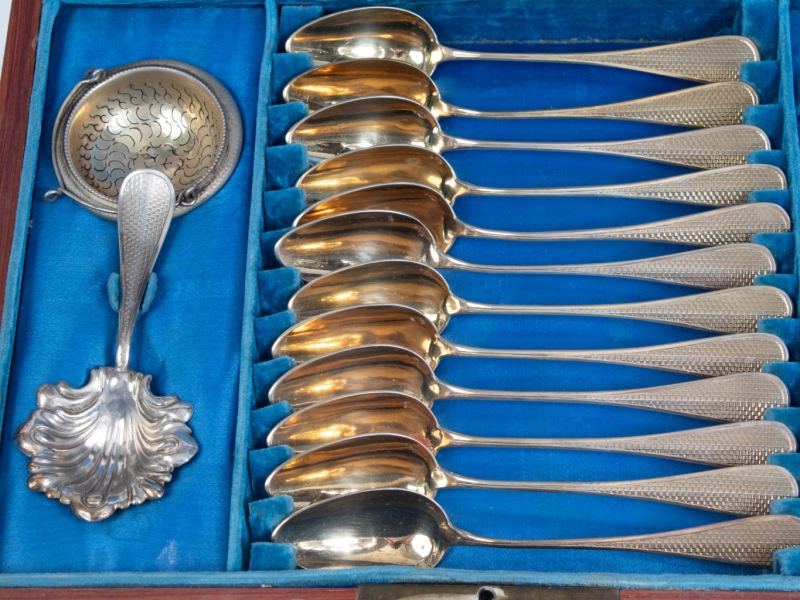 Un set de douze cuillères à café et un service à thé pour douze personnes