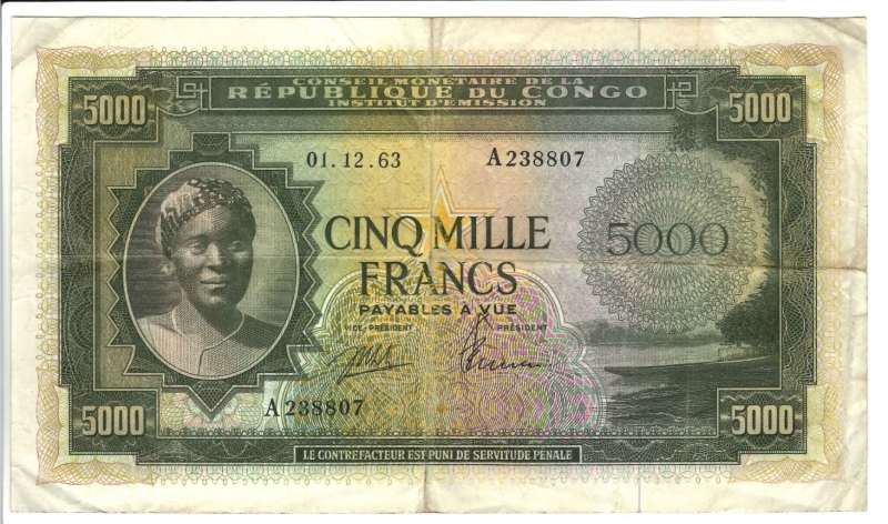 5000 Francs, 01.12.1963, A 238807 (Pick 3a).