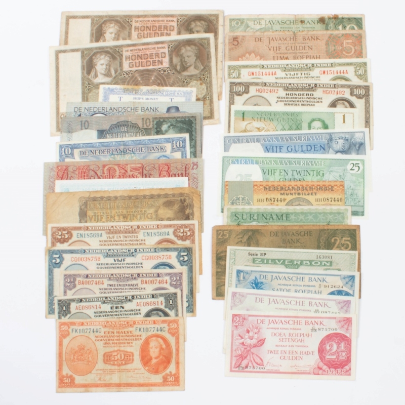 100 Gulden (3), 2.6.1932, 5.4.1939, 1.5.1941 ; 25 Gulden (2), 21.5.1937, 20.5.1940 ; 10 Gulden, (4), 8.7.1940, 19.2.1941, 3.11.1943, 4.3.1949 ; 5 Gulden, 16.10.1944 ; Indes néerlandaises, 1/2 Gulden, 14.1.1920 ; Gulden, 15.6.1940 ; émission de 1943: 50 Cent, 1, 2 1/2, 5, 25, 50, 100 Gulden ; Javasche Bank, émission de 1948 : 50 Cent, Gulden, 2 1/2 Gulden ; Nouvelle-Guinée néerlandaise, Gulden, 8.12.1954 ; Suriname, 25 Gulden, 1.11.1985 ; 5 Gulden, 1.9.1963 ; Gulden, 1.4.1971.