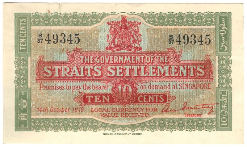10 Cents, 14.10.1919, B/87 49345, titre: Treasurer. (Pick 8b).
