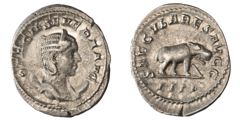 Antoninien, 4,82g, 248, Rome, buste diadémé et drapé à droite sur un croissant, OTACIL SEVERA AVG, rev. hippopotame à droite, SAECVLARES AVGG, IIII à l'exergue (RIC 130 ; RSC 43).