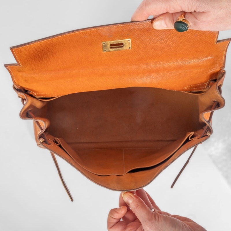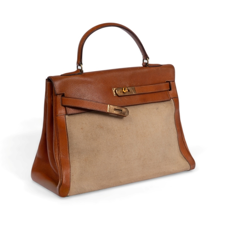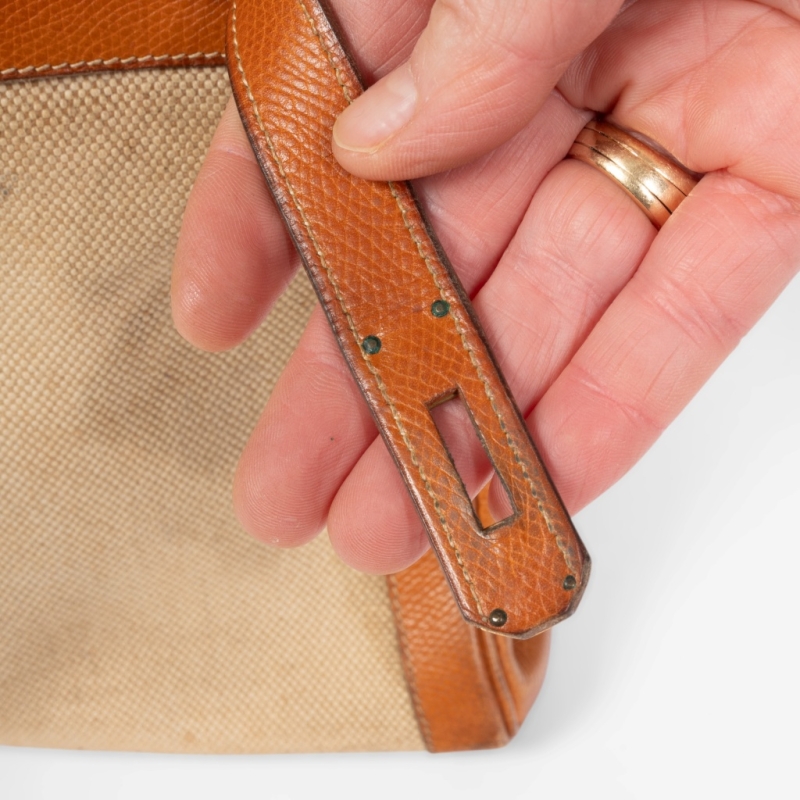 en toile H et cuir Courchevel. Sac vintage pré 1971.