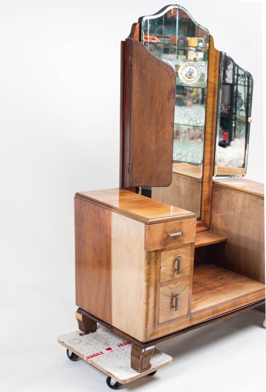 en placage de noyer, à trois miroirs, poignées en bronze argenté