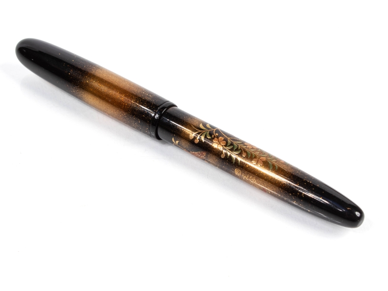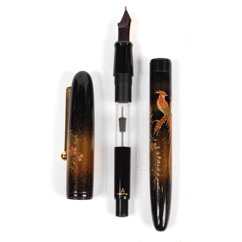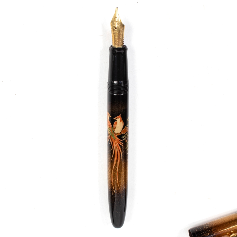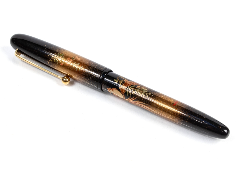 stylo-plume à décor de laque urushi avec décor maki-é. les oiseaux enlacés sont un symbole de longévité, de la vie féconde, empruntés à la mythologie de l'ancien Japon. Plume de taile B 18 Kt. Numéroté