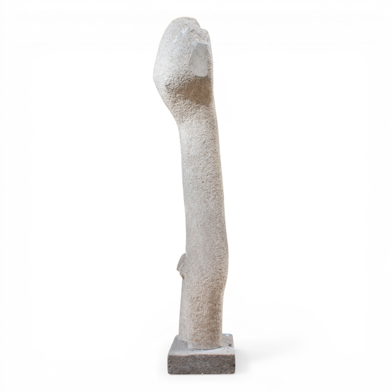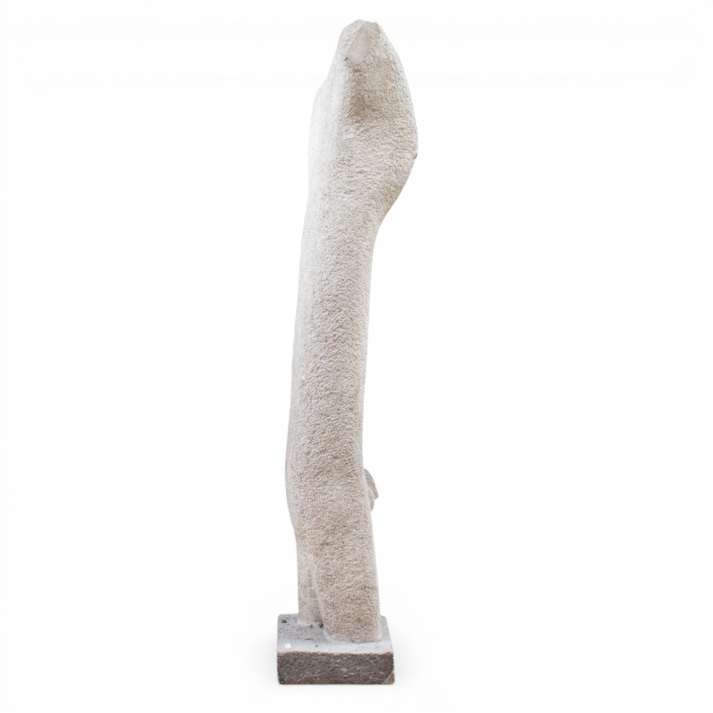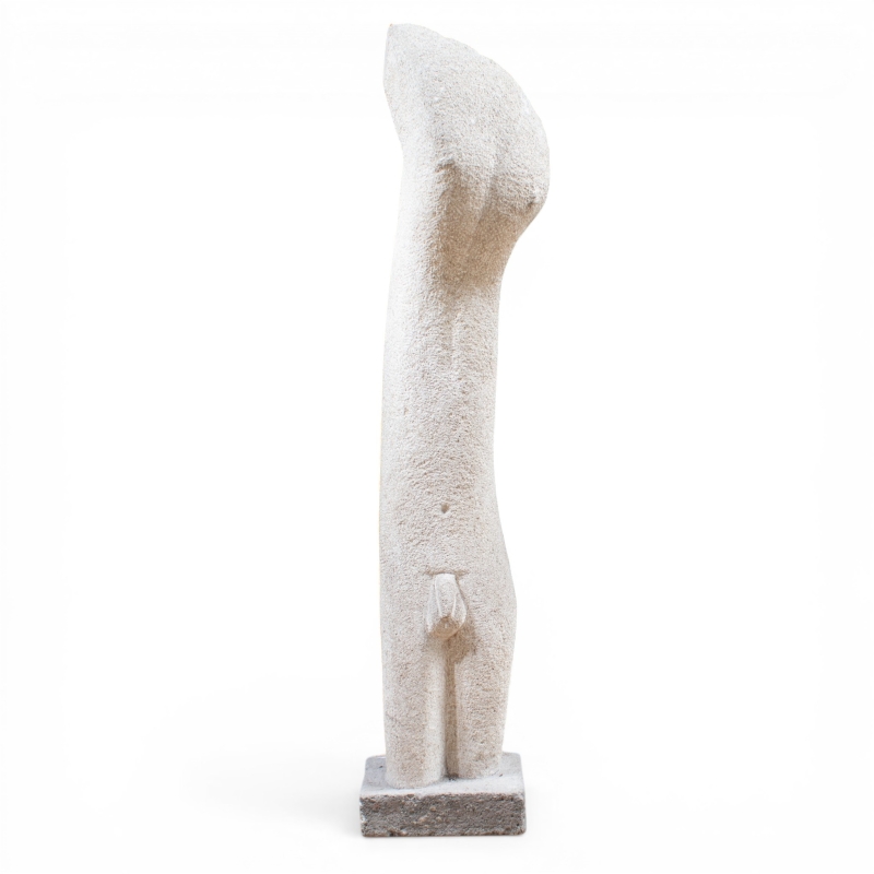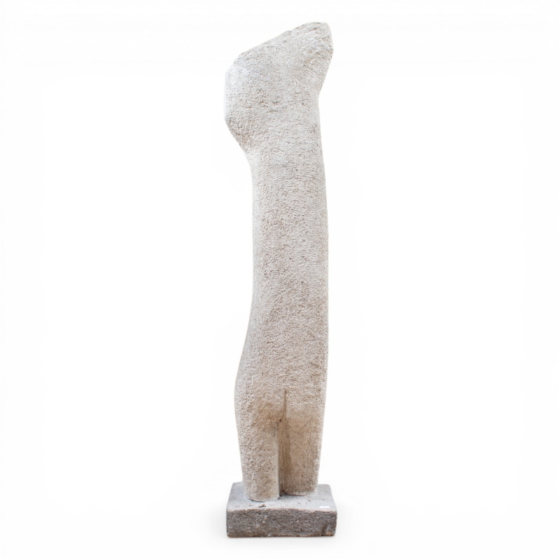 sculpture en pierre calcaire, socle en ciment. Non signé