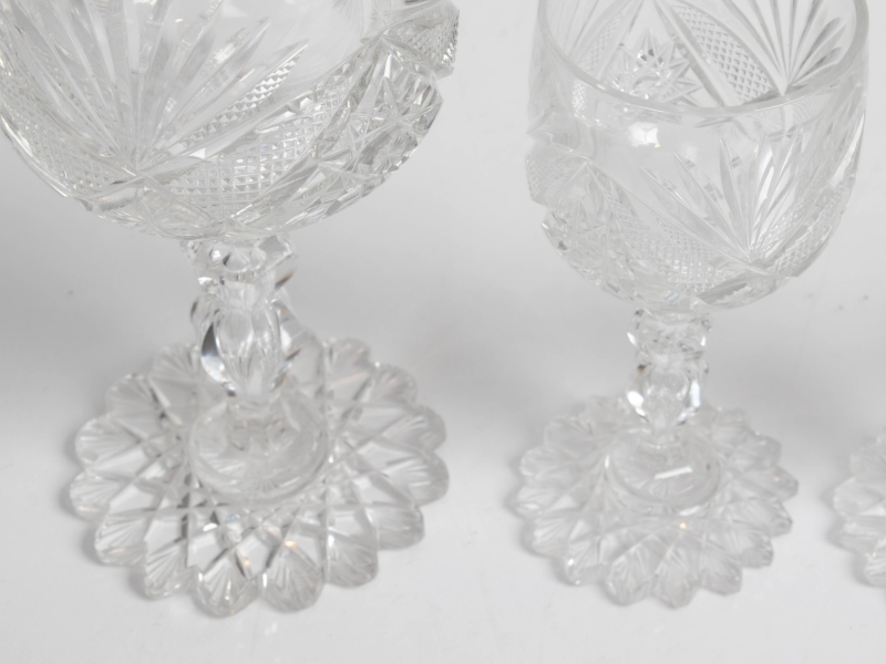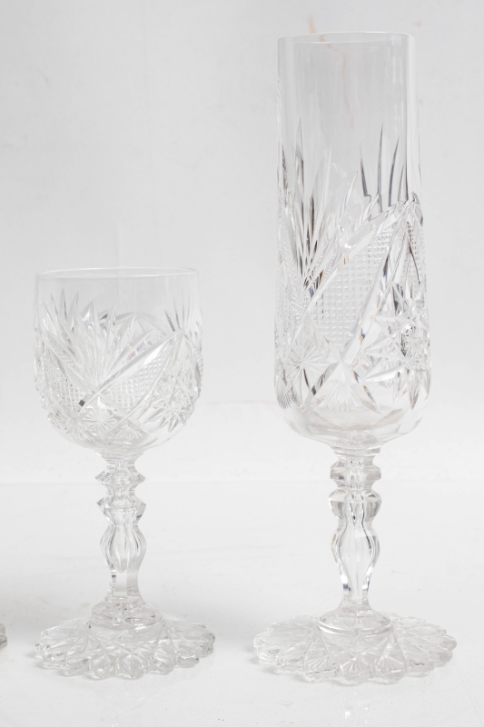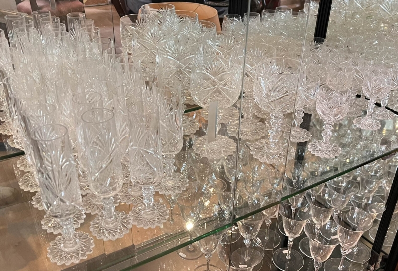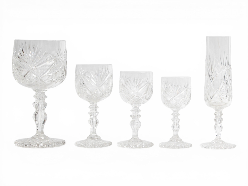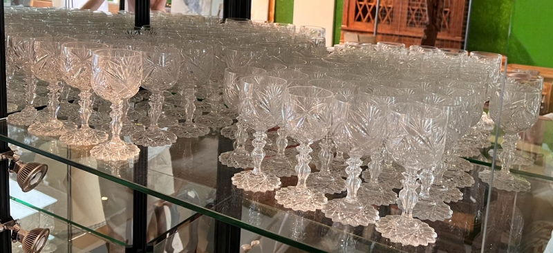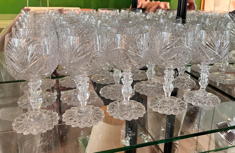 en cristal taillé comprenant : 20 verres à eau, 22 verres à vin rouge, 30 verres à vin blanc, 14 verres à porto, 19 flutes à champagne,