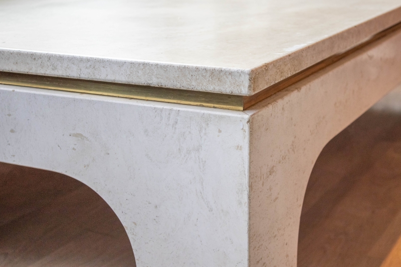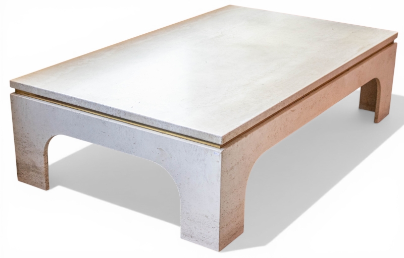 en travertin, plateau souligné d'un jonc en laiton doré,