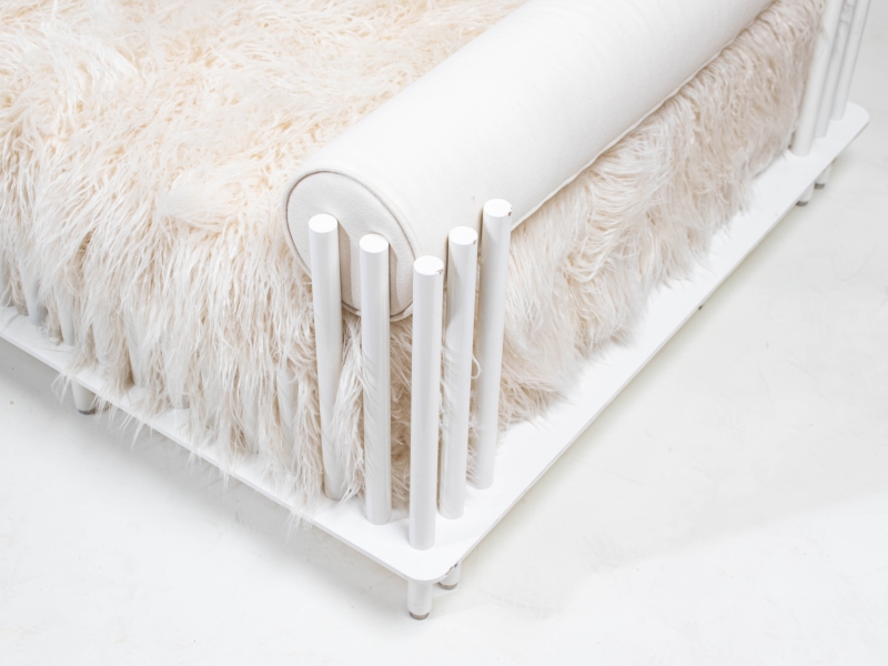 en acier laqué blanc, tissu fausse peau de mouton, et laine blanche