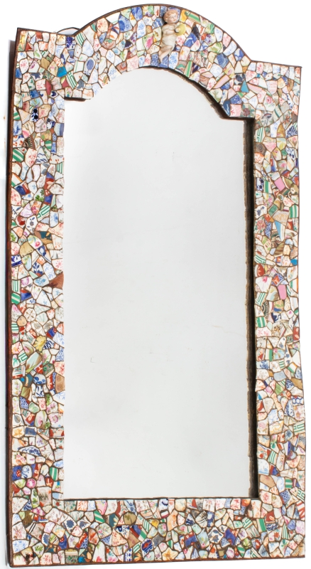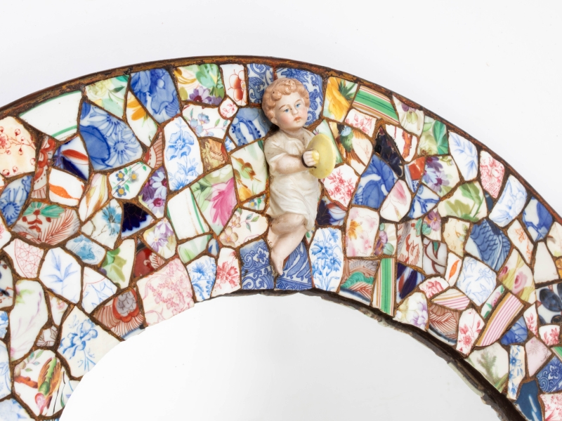 Sur une base en métal laqué marron clair, surmonté d'un angelot polychrome