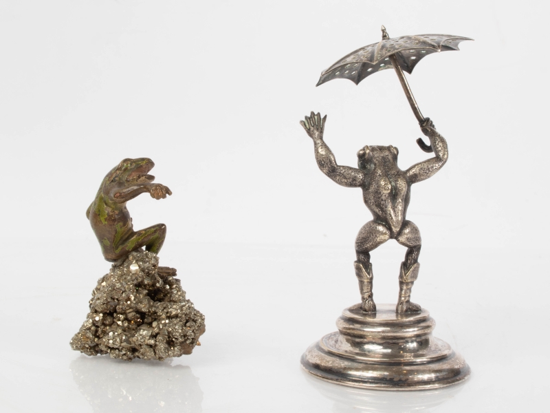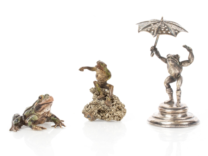 deux bronzes de Vienne et une grenouille en métal argenté