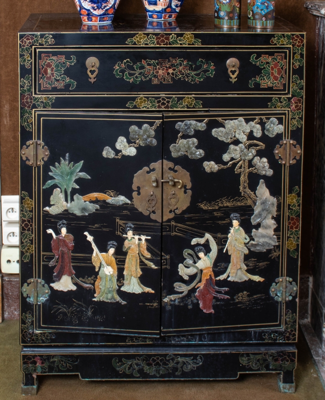 en laque et incrustations de pierre