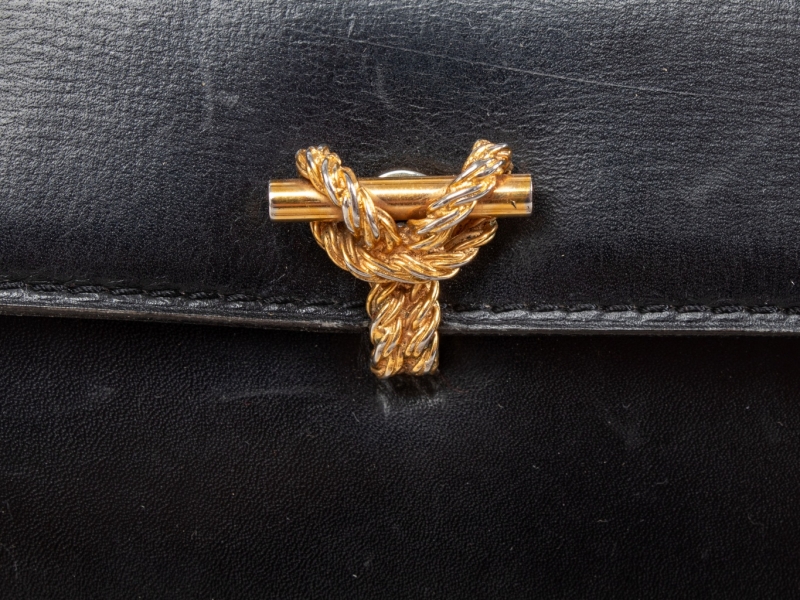 Intérieur doublé daim naturel et finitions en box noir. Pas de miroir, pas de porte clé.