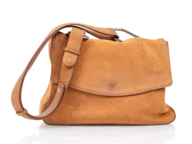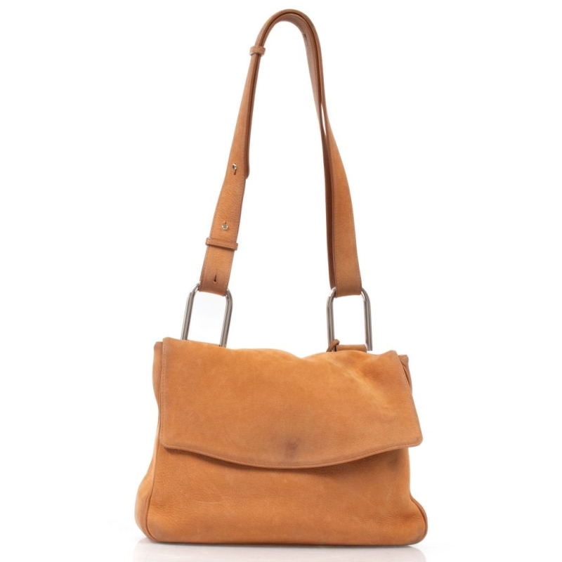 en cuir daim couleur "Horizon" (beige foncé). Intérieur doublé cuir, une poche intérieure, fermeture à glissière, doublure en tissu Delvaux.