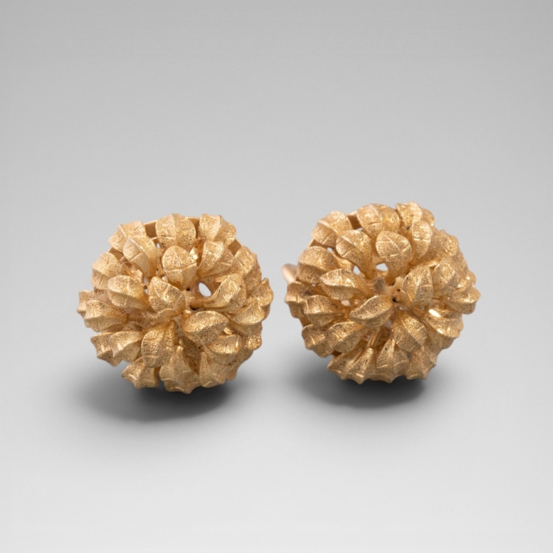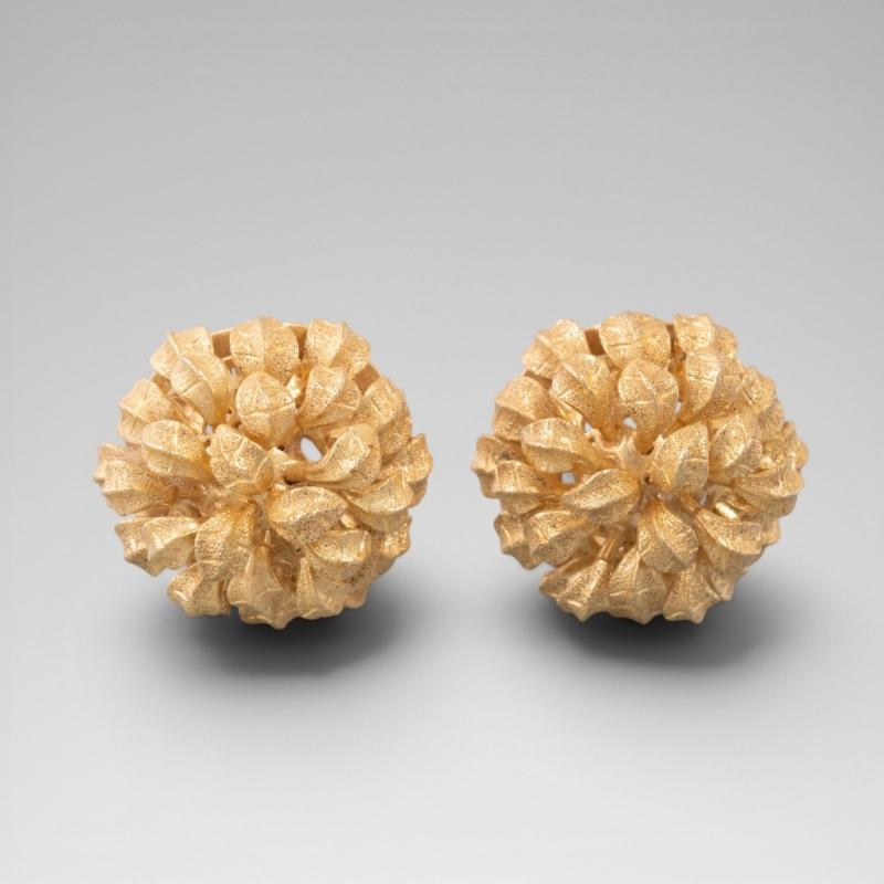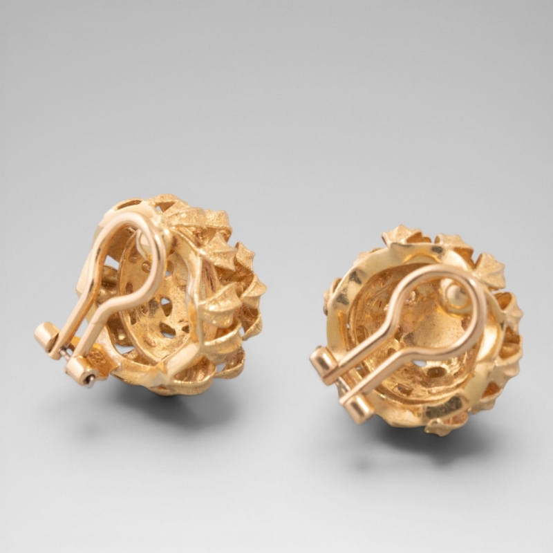 clips d'oreille en or jaune 18K (750) finement ciselés représentant une profusion de pétales de fleurs superposés.