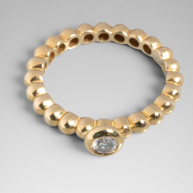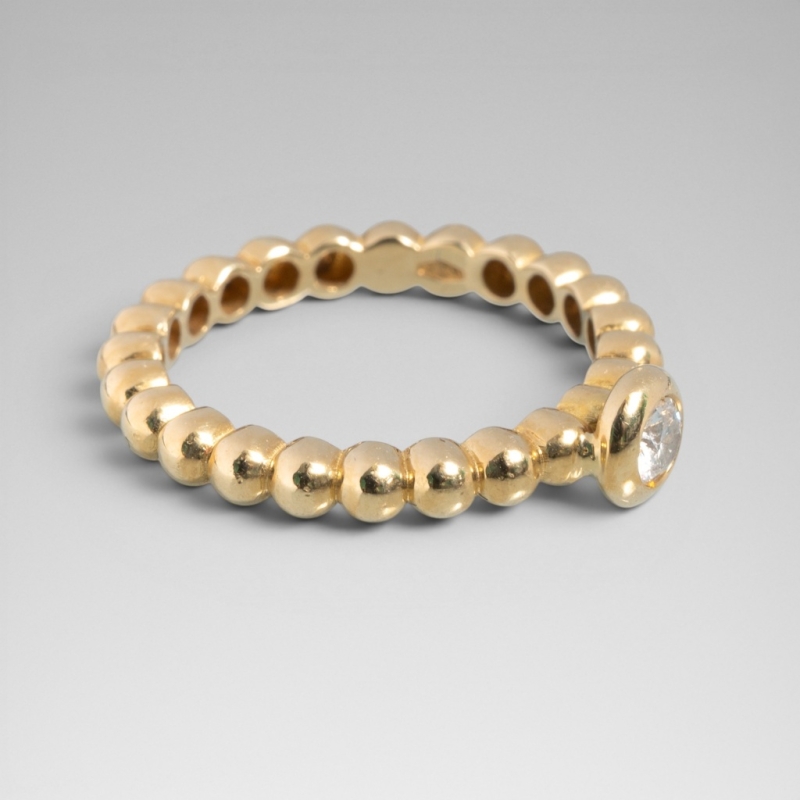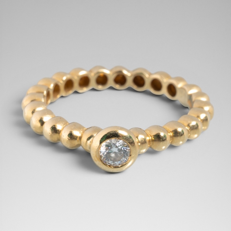 monture perlée en or jaune 18K (750) centrée d'un diamant taille brillant serti clos.