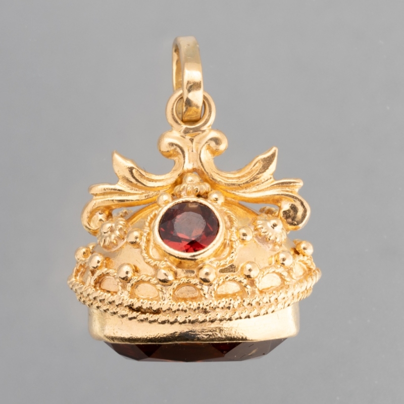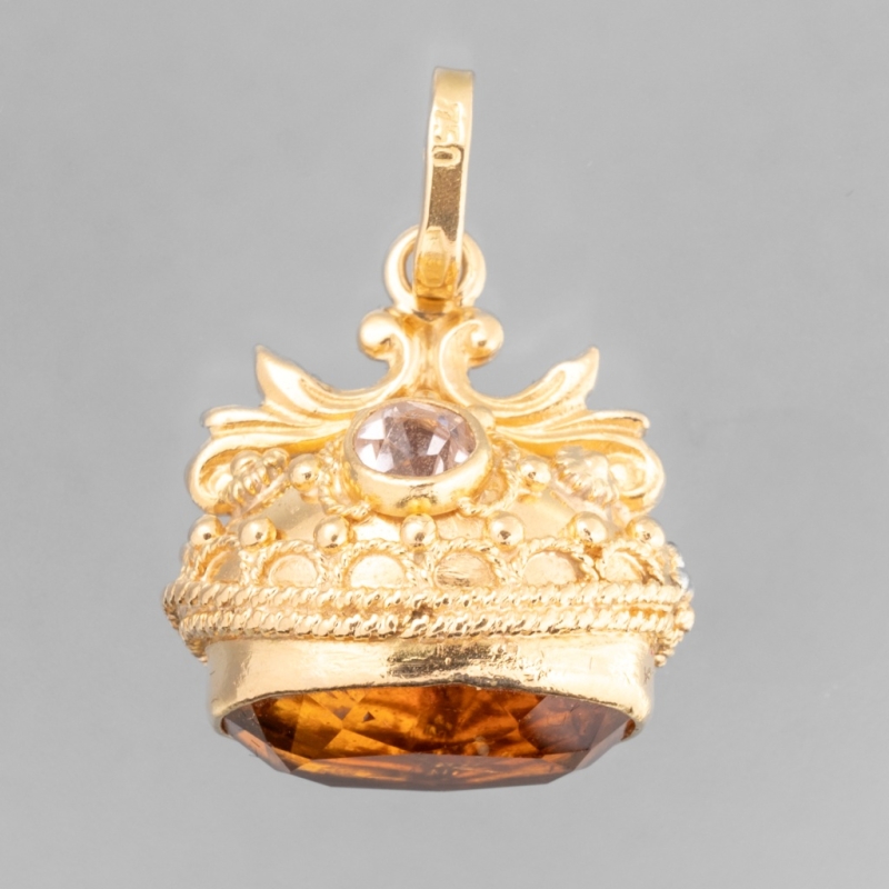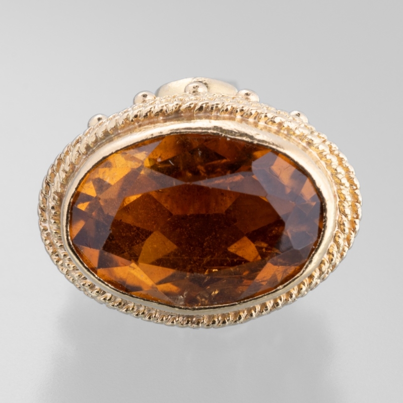 En or jaune 18K (750) d'inspiration byzantine à décor très ouvragé orné d'une importante citrine ovale et facettée