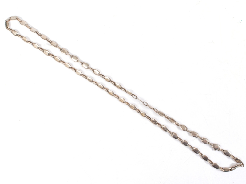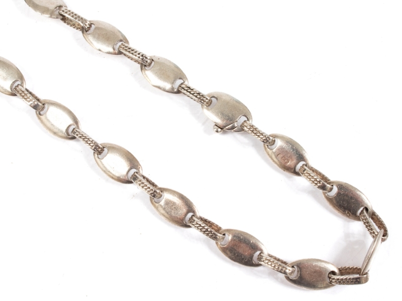 long sautoir en argent à mailles grain de café reliées par des maillons cordés et allongés muni d'un fermoir invisible sécurisé.