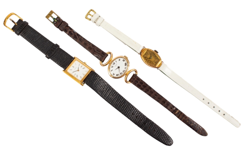 Boîtier rectangulaire doré, numéro de série : 3027 au dos. Remontoir à 3 h.