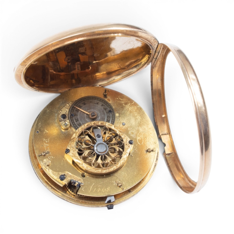 Boîtier : rond sur charnière, poinçons de maître à l’intérieur, le dos lisse