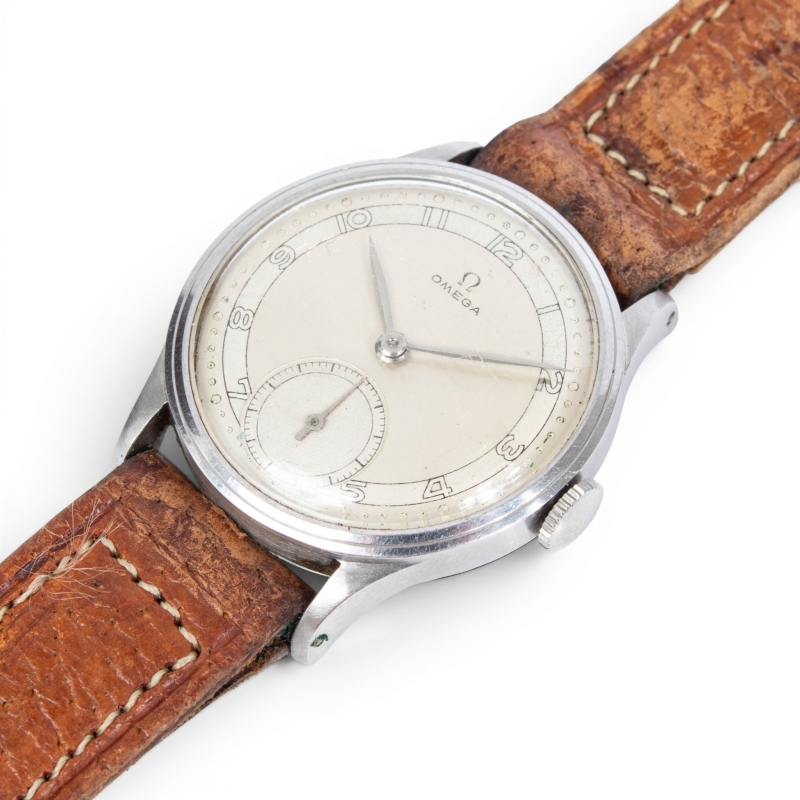 Cadran : deux tons avec chiffres arabes, minuterie perlée, petite trotteuse, signé